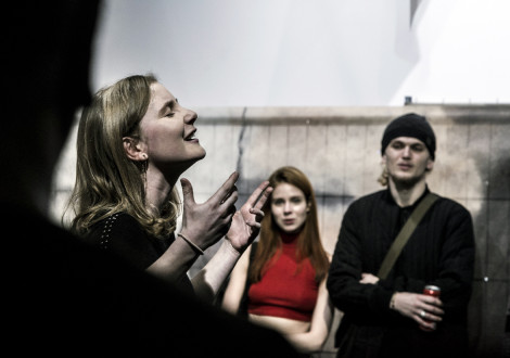 Pour l'ouverture de son exposition "Liberté, Égalité, Fraternité ou Le Chant", Transfo a invité la chanteuse et actrice Marie Oppert, de la Comédie Française, pour une interprétation de "L'Auberge" de Brigitte Fontaine, accompagnée au piano par Charlotte Gauthier.