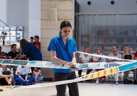 Dans le cadre du prix Emmaüs Solidarité pour la création contemporaine 2025, l'artiste Yasmina Benabderrahmane a proposé une performance collaborative, fruit d’ateliers ouvert à toutes et tous abordant la création d’images photographiques et leur résonnance, à la fois matérielle et symbolique.
